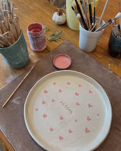 росписьНа мастер-классе вы сможете создать собственный шедевр и не переживайте, если вы ни разу ранее не держали в руках глину – большинство наших гостей знакомятся с гончарным кругом у нас уже на первом занятии и создают отличные по качеству изделия.